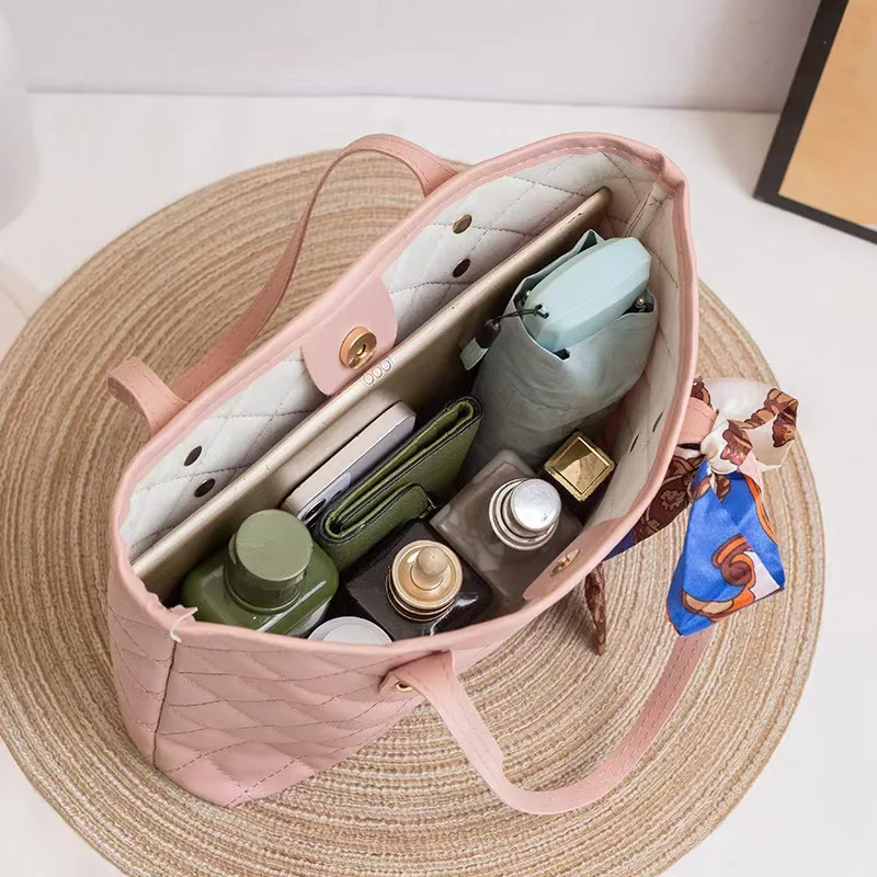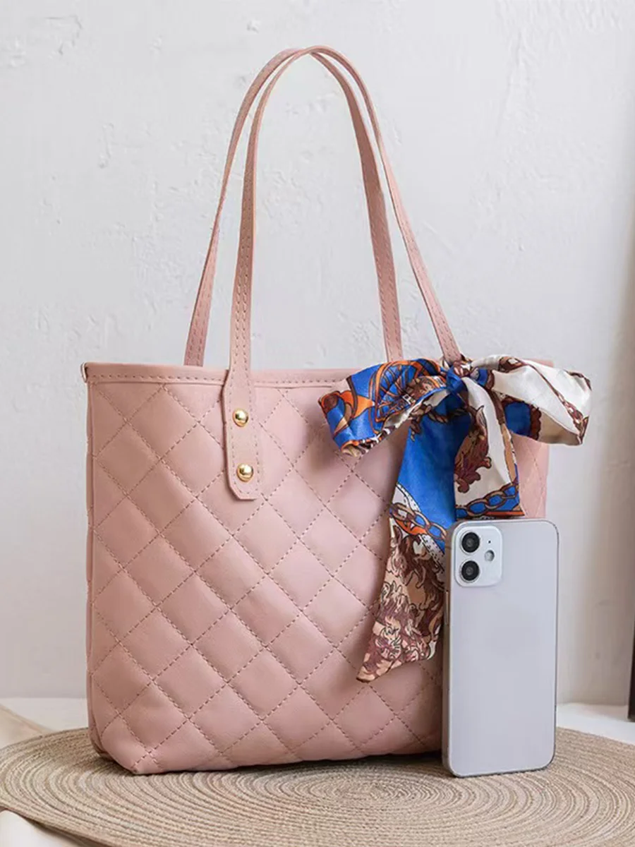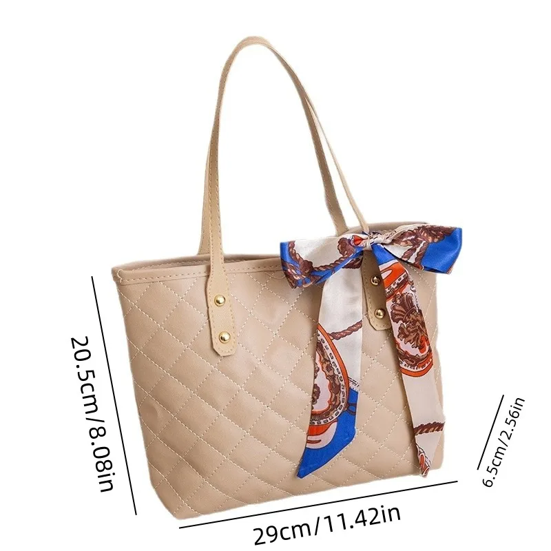 All-Match PU Leather Tote Handbag Silk Ribbon Multifunction Crossbody Bag Zipper Korean Style Bow Shoulder Bag Women Luxury Chic