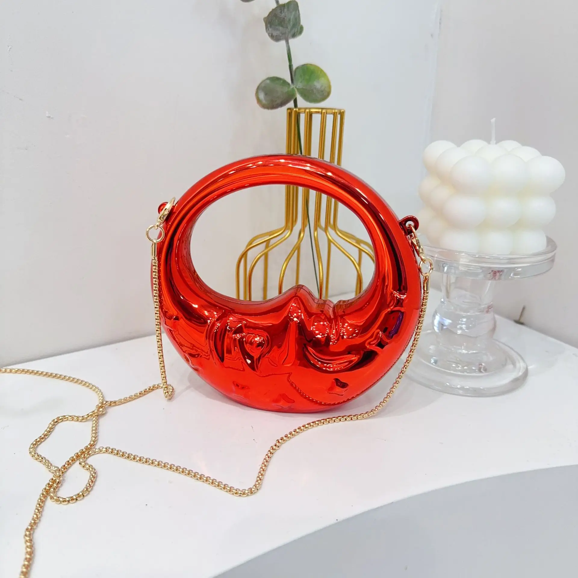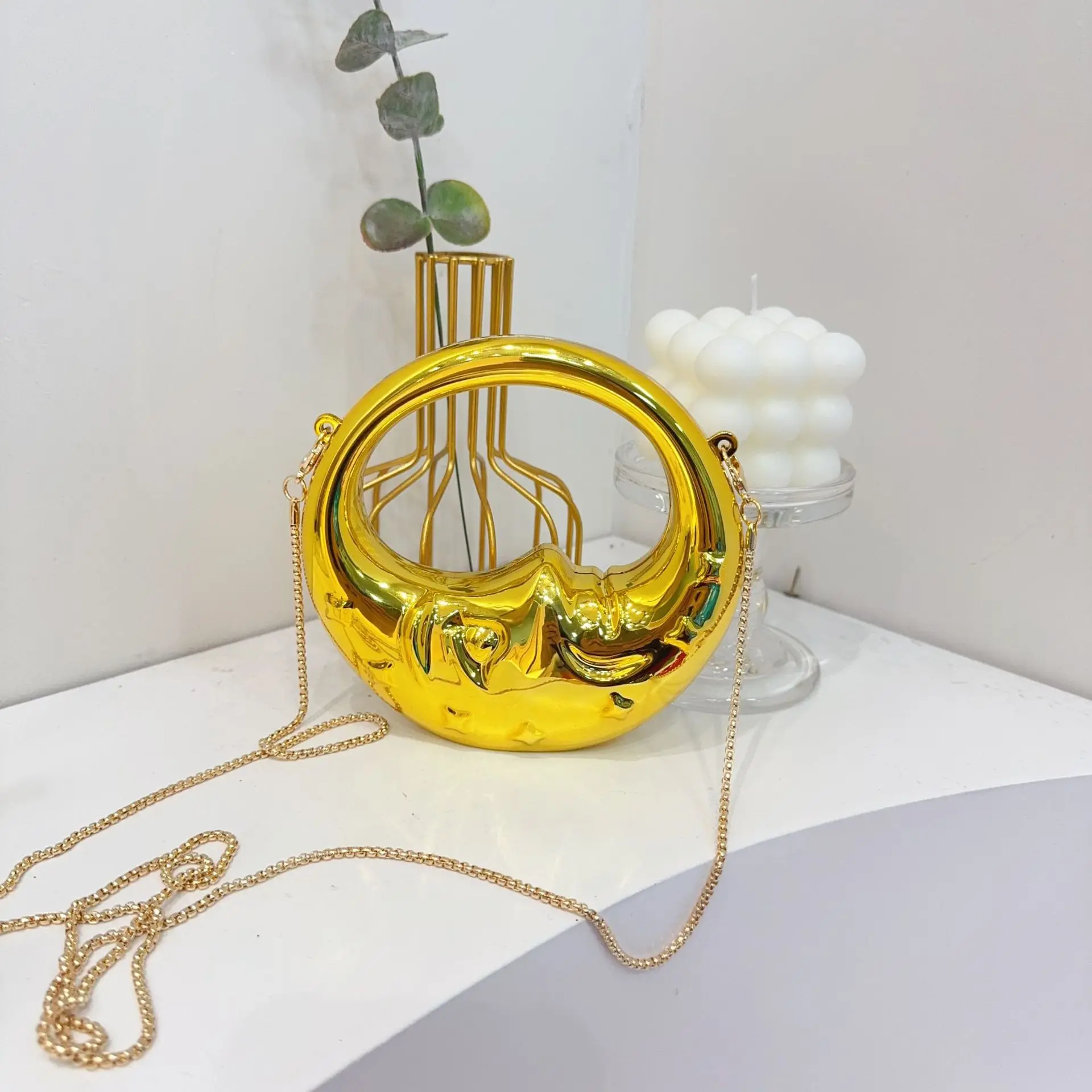 Be the first to review “Mini Golden Evening Bag Purses and Handbags Luxury Designer Shoulder Bags Funny Shape Party Wedding Acrylic Face Clutch Purse”